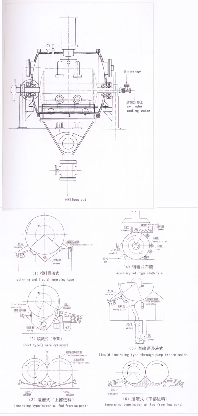 可分為二種形式:單筒,雙筒干燥機,另外也可按操作壓力分常壓和減壓兩種形式。